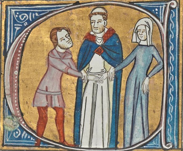 Miniatuur of illuminatie uit een middeleeuws manuscript huwelijksceremonie uit de Late Middedeleeuwen